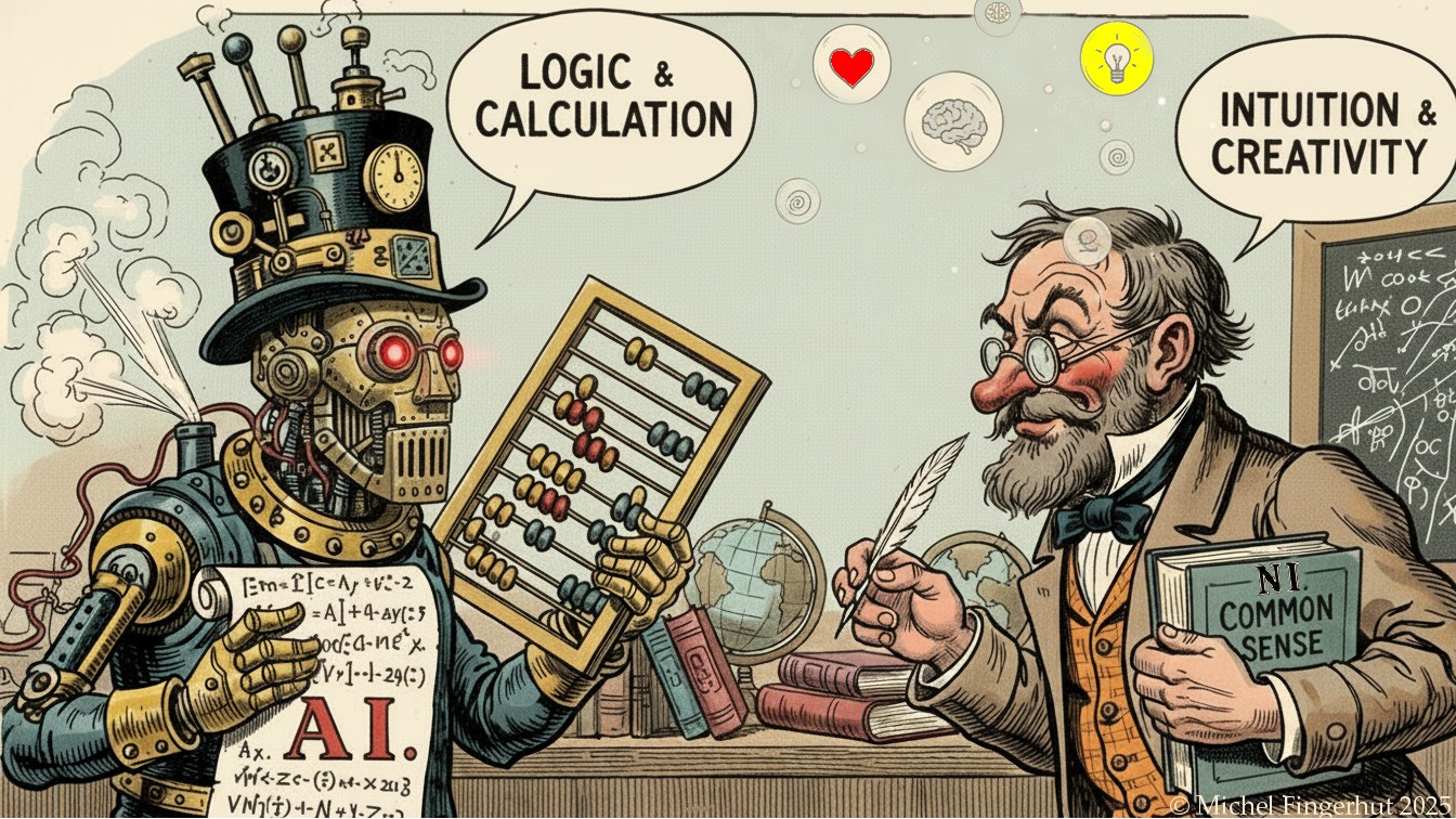 In short, AI is an intelligence that works. NI is an intelligence that wonders why it works at all. One answers questions. The other still wonders whether they are the right ones, and occasionally prefers to ask them sideways. Less efficient, no doubt. But it is precisely this inefficiency that gives it the strange impression of being alive.