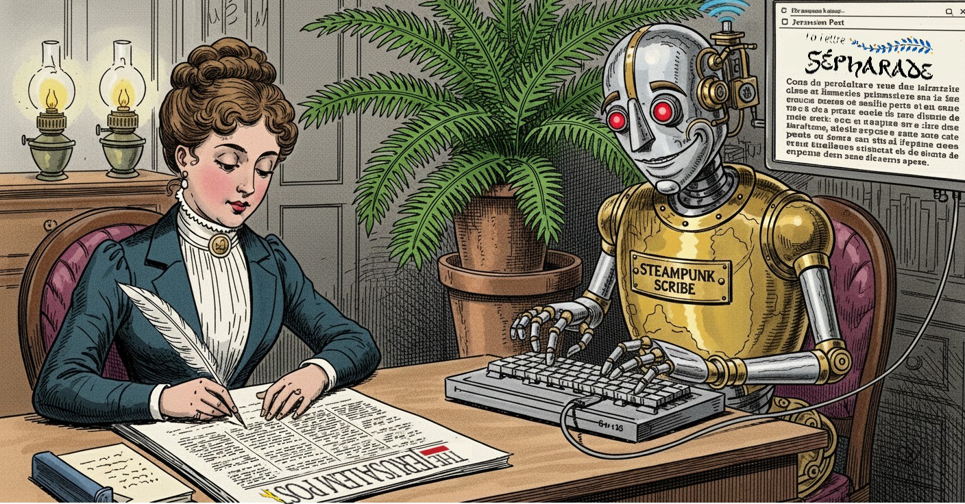 Le philosophe allemand sortit d’un étui de cuir un instrument mince et pliant ayant l’apparence d’un livre, mais brillant de l’intérieur d’une lumière étrange. Lorsqu’il l’ouvrit et toucha une surface lisse marquée de signes, l’écran de la partie supérieure fit apparaître des lignes tracées de feu. La machine répondait aussitôt : elle calculait des nombres, montrait des schémas et même des images de visages humains.
